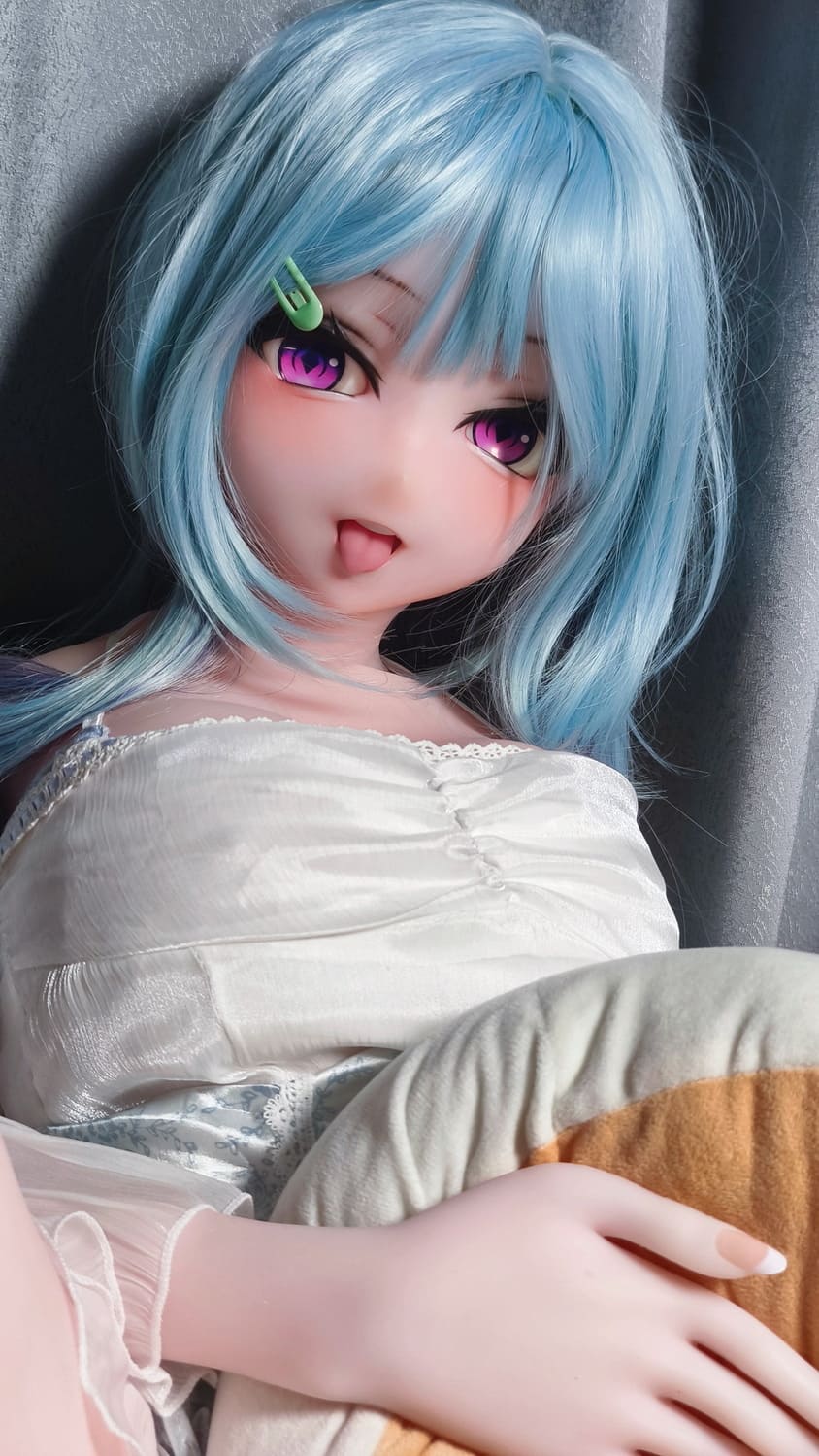 Augenwimpern und -brauen auf dem weichen Kopf sind nicht implantiert sondern bemalt.